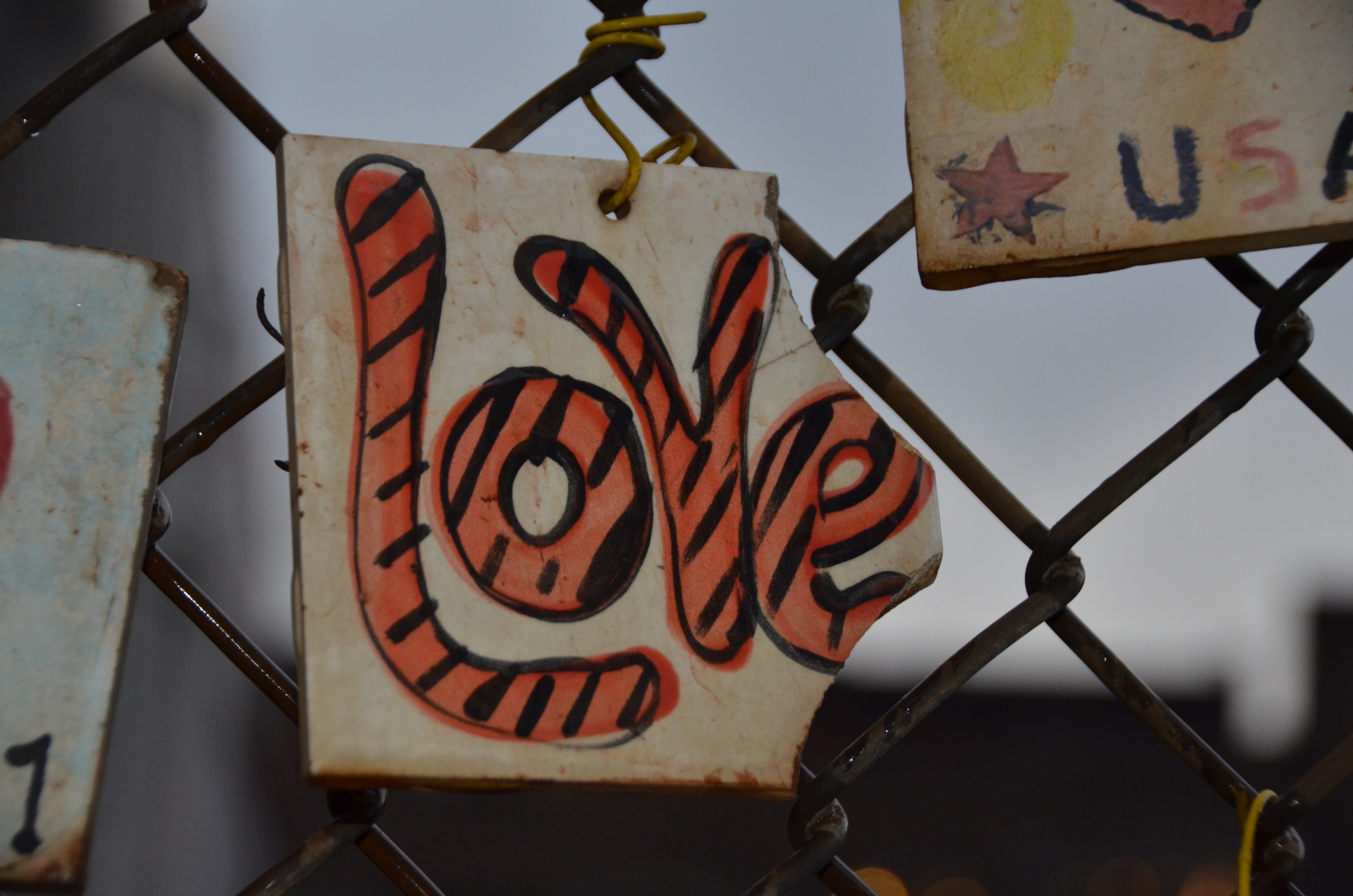 The tiles will live on, in respect to the 2,998 victims, the survivors, the community and those loving hearts and hands that painted the heartfelt messages on little square pieces of ceramic. The goal is to open a museum in an empty storefront across the street. It will be nice if the city and or construction workers will give us the rusty fence they are going to trash anyway. We hope to line the wall of the museum with that rusty chain link fence and hang the tiles once more. A memorial of survival, of determination and of love. As the sun set the last heart-shaped tile was packed up, the boxes closed in hopes of opening one day soon at the planning of the museum. The tiles are safe now, we are determined.