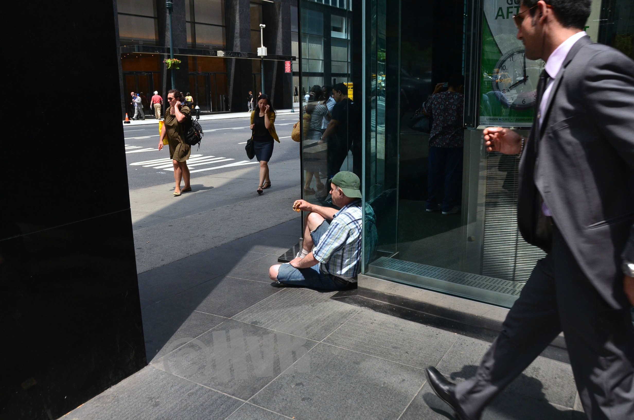 Enjoying a McDonald’s sandwich with a street corner view = priceless.