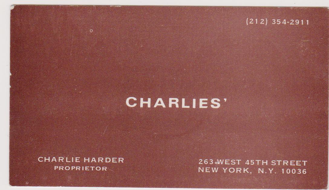 When the performance was over, I’d go into the theater pretending to look for something (not) left behind and grab a Playbill and then rush to the stage door to get an autograph. I was in high school and early college days and couldn’t afford the tickets to all the shows I wanted to see. What I could afford after my rendezvous with Gloria Swanson or Ingrid Bergman – was a hamburger at a long gone theater restaurant called “Charlie’s“. It was located on West 45th street, right off Schubert Alley between Broadway and 8th Avenue.