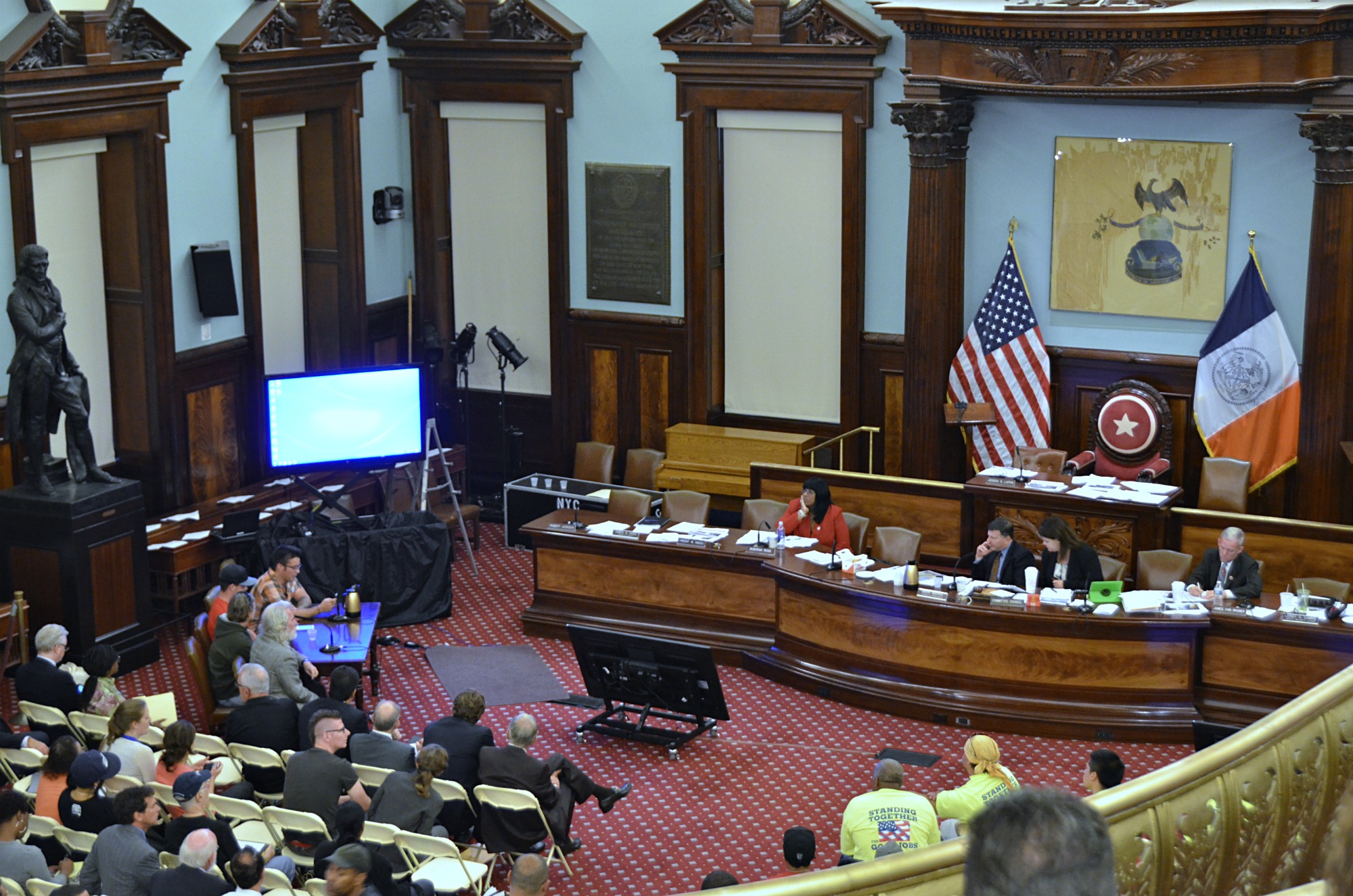 Photo of the day: MY SPEECH TO SAVE 5 POINTZ DIRECTED AT COUNCILMEMBER JIMMY VAN BRAMMER AND DEVELOPERS – On Wednesday October 2, 2013 both sides in favor and against tearing down Graffiti & Mural museum 5 Pointz, gathered inside City Hall for a hearing by the NYCHA – The New York City Housing Authority. It’s basically a side show/dog and pony show with the real estate developers always claiming tearing something down is “for the good of the community.” The owner, Jerry Wolcoff wants to build twin mirror glass apartment towers for which he will receive $7 million. Now you know me – I do not go quietly! Here is my passionate speech directed in part at my Queens councilmember, who is Christine Quinn’s lap dog and Mayor Bloomberg’s pet – Jimmy Van Brammer – who has stated he does not believe the magnificent powerful graffiti and mural works at 5 Pointz is “art” – and therefore in favor of tearing the building down. (When embarrassingly trapped by the truth of his statement at the hearing he said: “Well….I said I don’t quite understand it.” After also admitting he has rarely ever visited the site in his district.