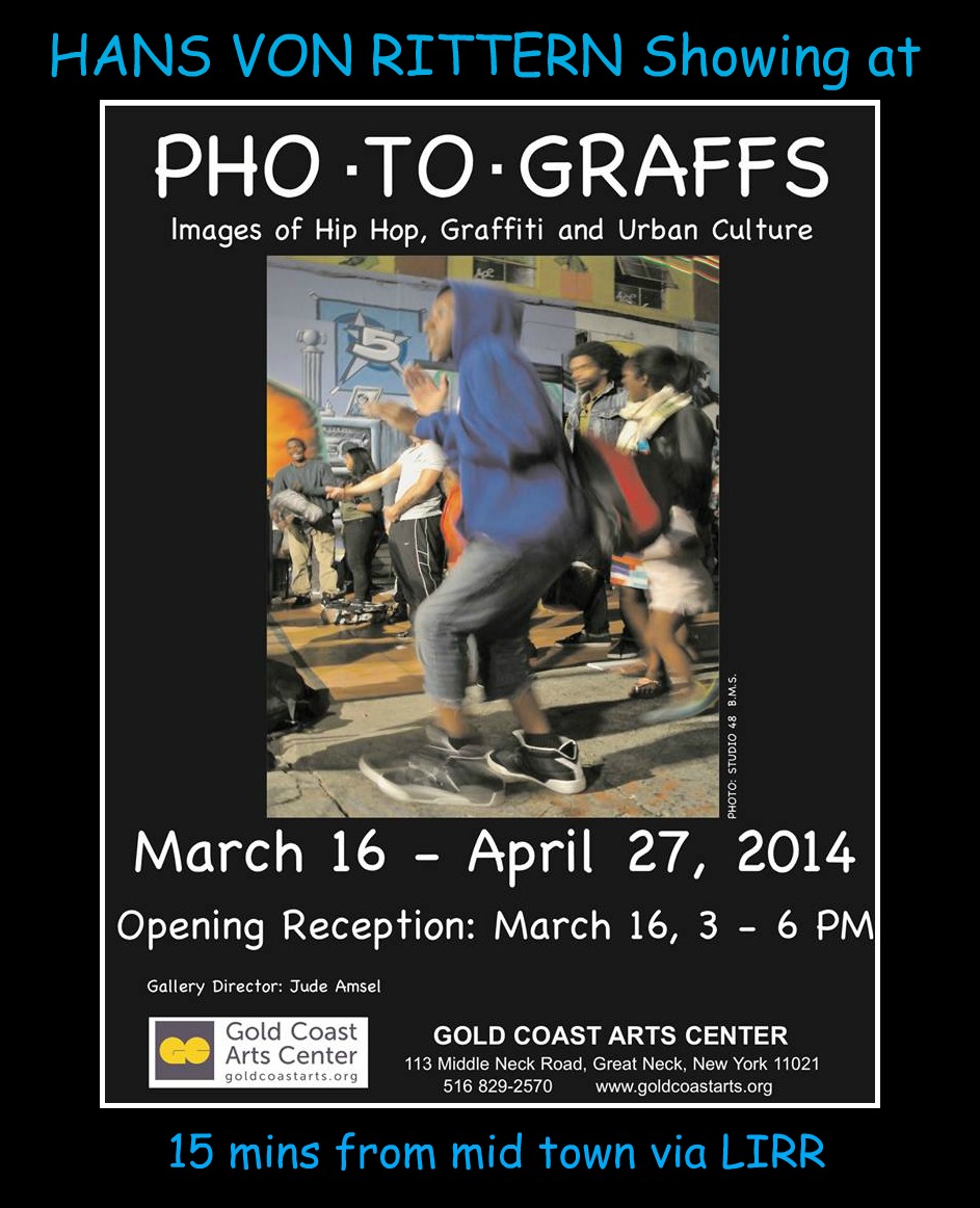 February 25, 2014 | Categories: DAILY PHOTOS WITH STORIES OF NEW YORK CITY | Tags: 5 Pointz, 5 Pointz Graffiti Museum, arts, celebrating Graffiti, celebrating Hip Hop, celebrating Urban Culture, Gold Coast Arts Center, graffiti, Great Neck Arts Center, Great Neck Long Island, Hans Von Rittern, Hans Von Rittern photo exhibit, interaction with graffiti and hip hop, Jude Amsel, LIRR, Manhattan, March 16 Sunday 3-6pm, Meet and greet Hans Von Rittern, Middle Neck Road, New York City, New York photo, PHO-TO-GRAFFS, Photo of the day, photography, photography exhibit, Queens, street art, street photography | 2 Comments