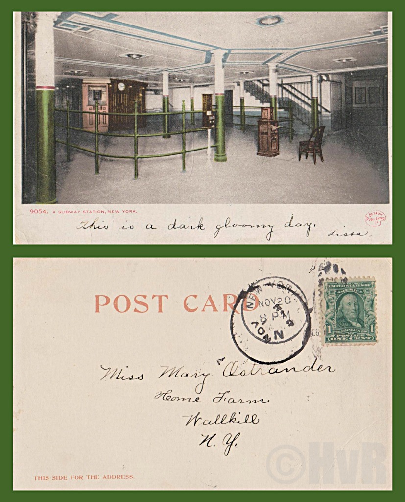 February 20, 2014 | Categories: DAILY PHOTOS WITH STORIES OF NEW YORK CITY | Tags: 1906 postcard, antique Manhattan postcard, architecture, collecting postcards, Detroit Publishing Company, Hans Von Rittern, Manhattan, Mary Ostrander, New York City, New York photo, New York subway platforn, Ostrander Elementary School, Ostrander Elementary School - 137 Viola Avenue, Photo of the day, Postcard Stories from New York, Postcard story of the Week, subway, subway station, transportation, vintage postcard, Wall Street subway, Wallkill New York | 2 Comments