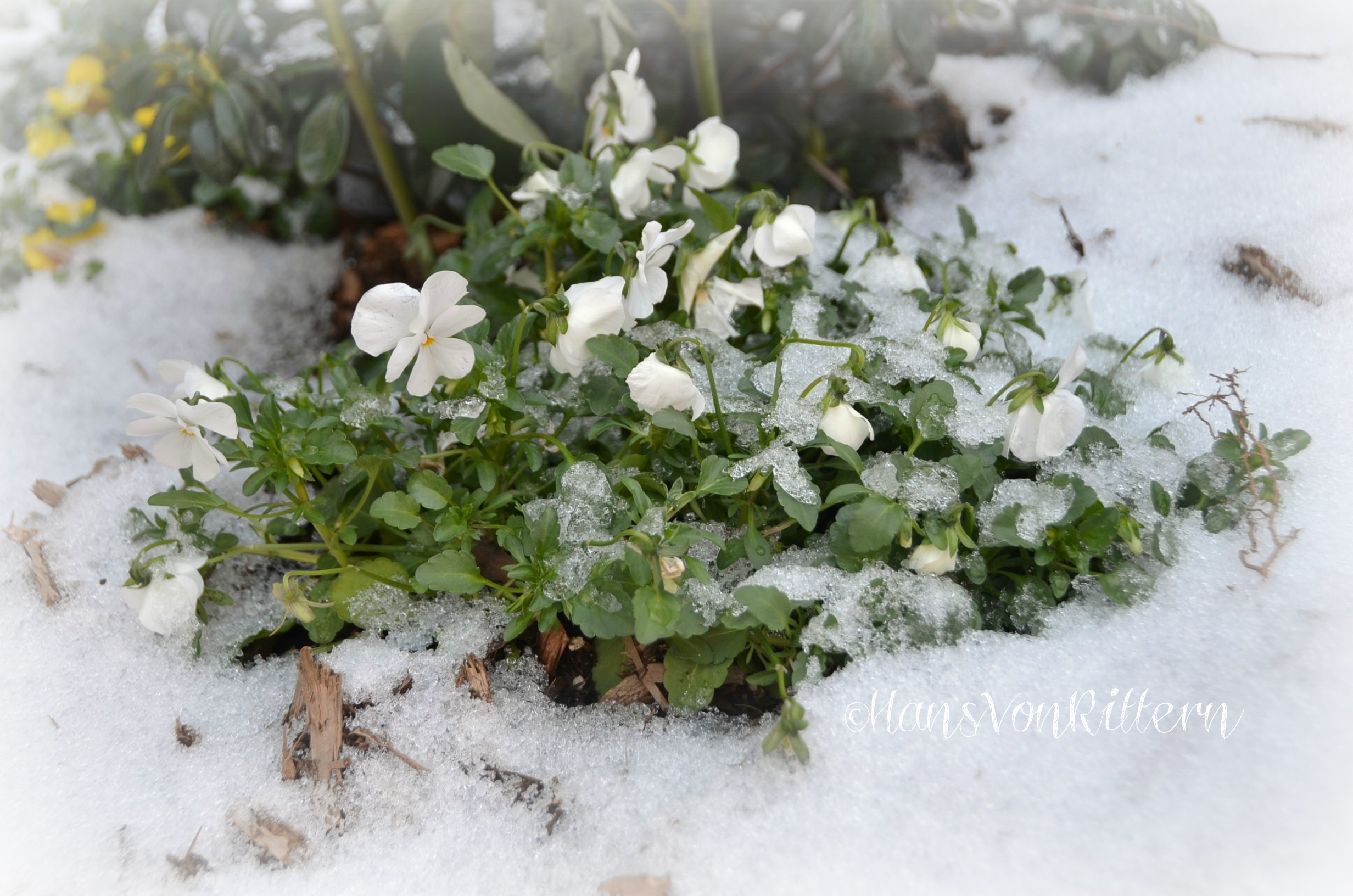 Photo of the day: FROSTED BLOOMS – Yesterday morning many of us in the Central and North Eastern part of the United States woke up to a rather rude awakening – that four letter word SNOW! After having been teased with near 80F degree weather here in Manhattan and sporting flip flops, this morning the roads were iced, cars were encased in an icy snow and the spring plants had been covered with a last minute frosting.
