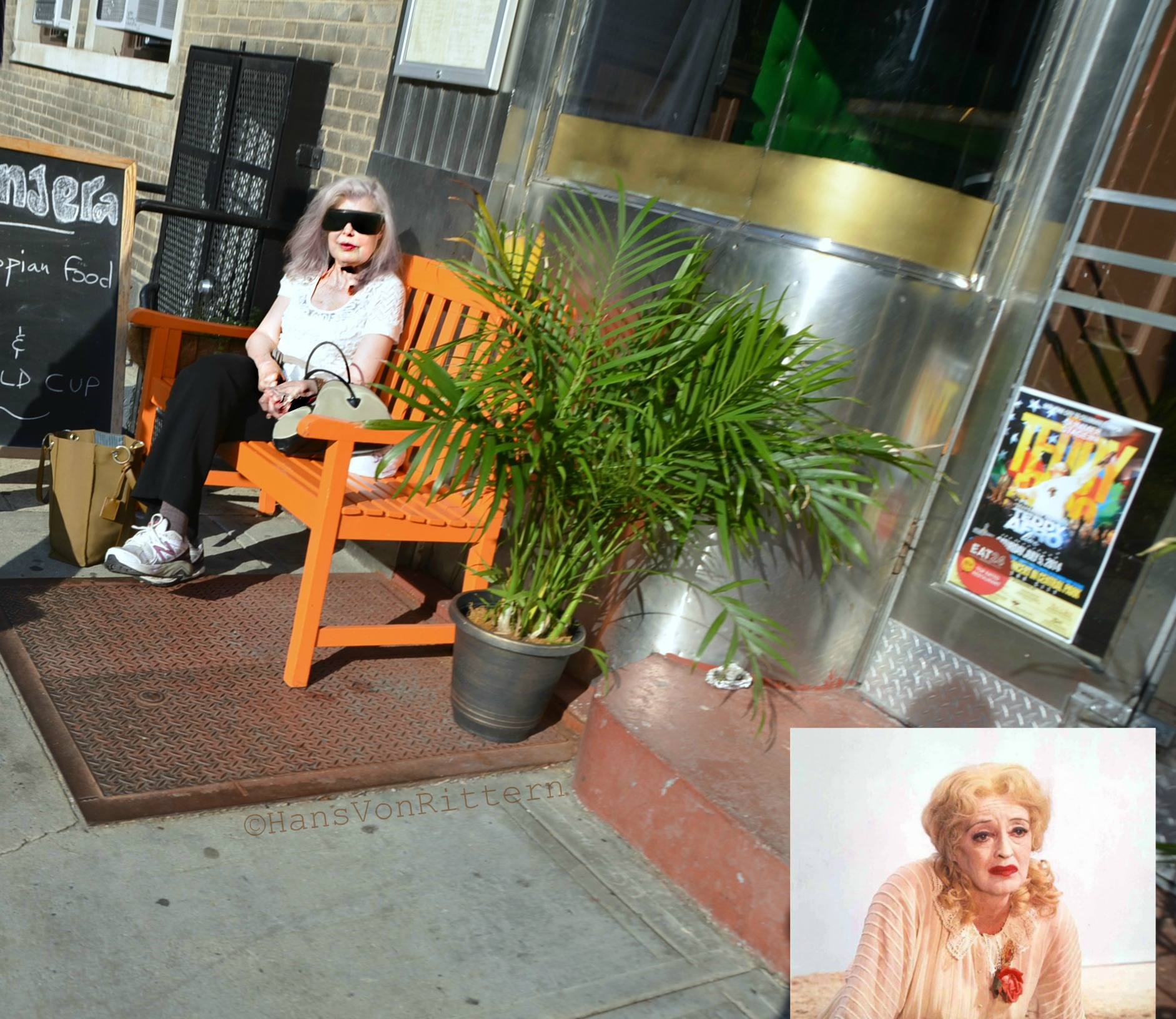 June 19, 2014 | Categories: Uncategorized | Tags: Abingdon Square Greenwich Village, aged film star, aged rocker sitting on bench, Baby Jane Hudson, BABY JANE HUDSON LIVES, Bette Davis, cool granny with dark sunglasses, cool rocker granny, Greenwich Village, Hans Von Rittern, Injera Restaurant, Injera Restuarant, Manhattan, New York City, New York photo, old woman with white hair on bench, Photo of the day, photography, street scene Manhattan, Whatever Happened to Baby Jane? | Leave a comment