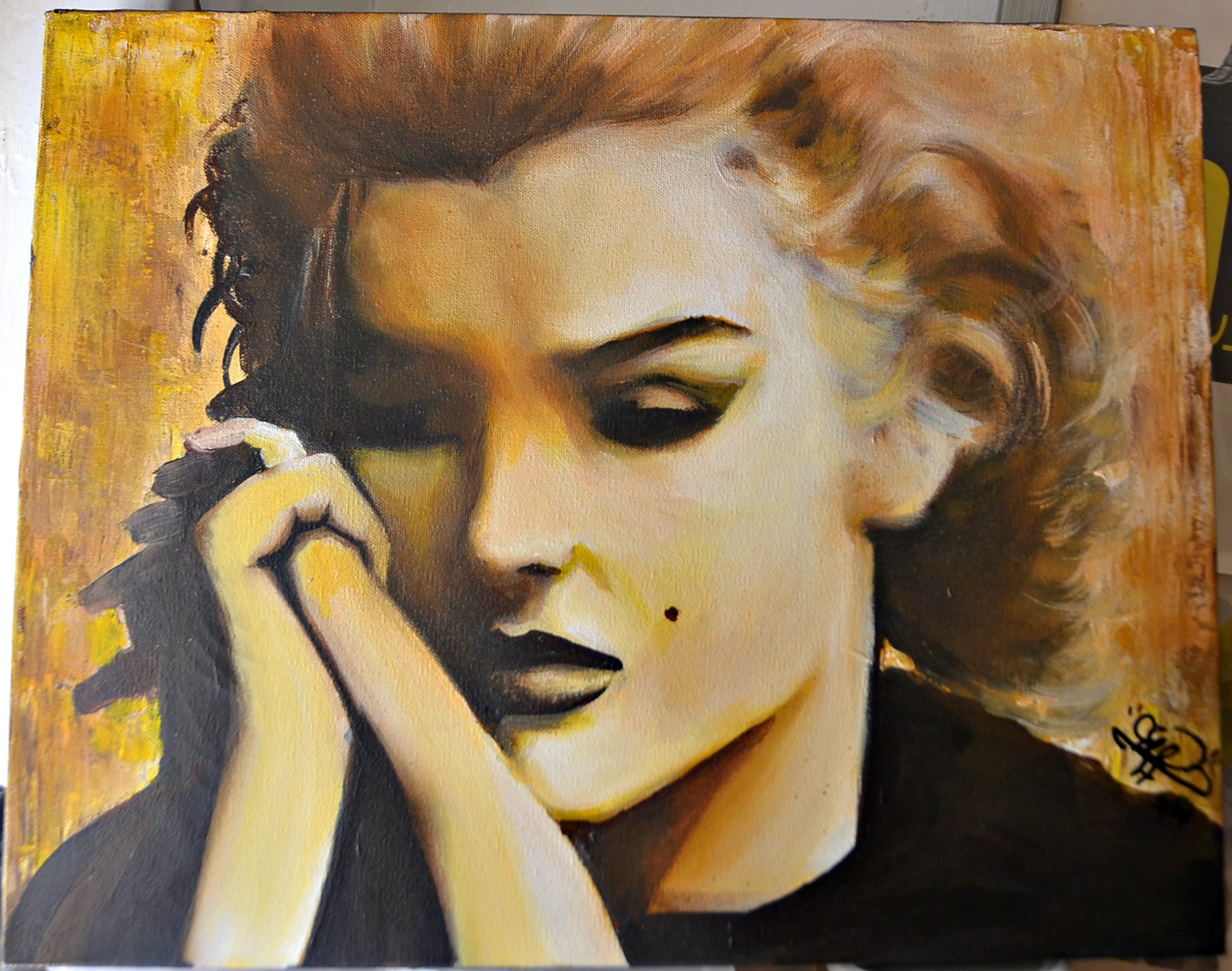 What is so haunting about it, is that it is not ‘wet lip Marilyn’, or ‘skirt blowing Marilyn’. It beautifully sad reflective 1962 Marilyn portrayed as a human being – not symbol. Notice the painting goes from light (right side) to the dark side (on the left).