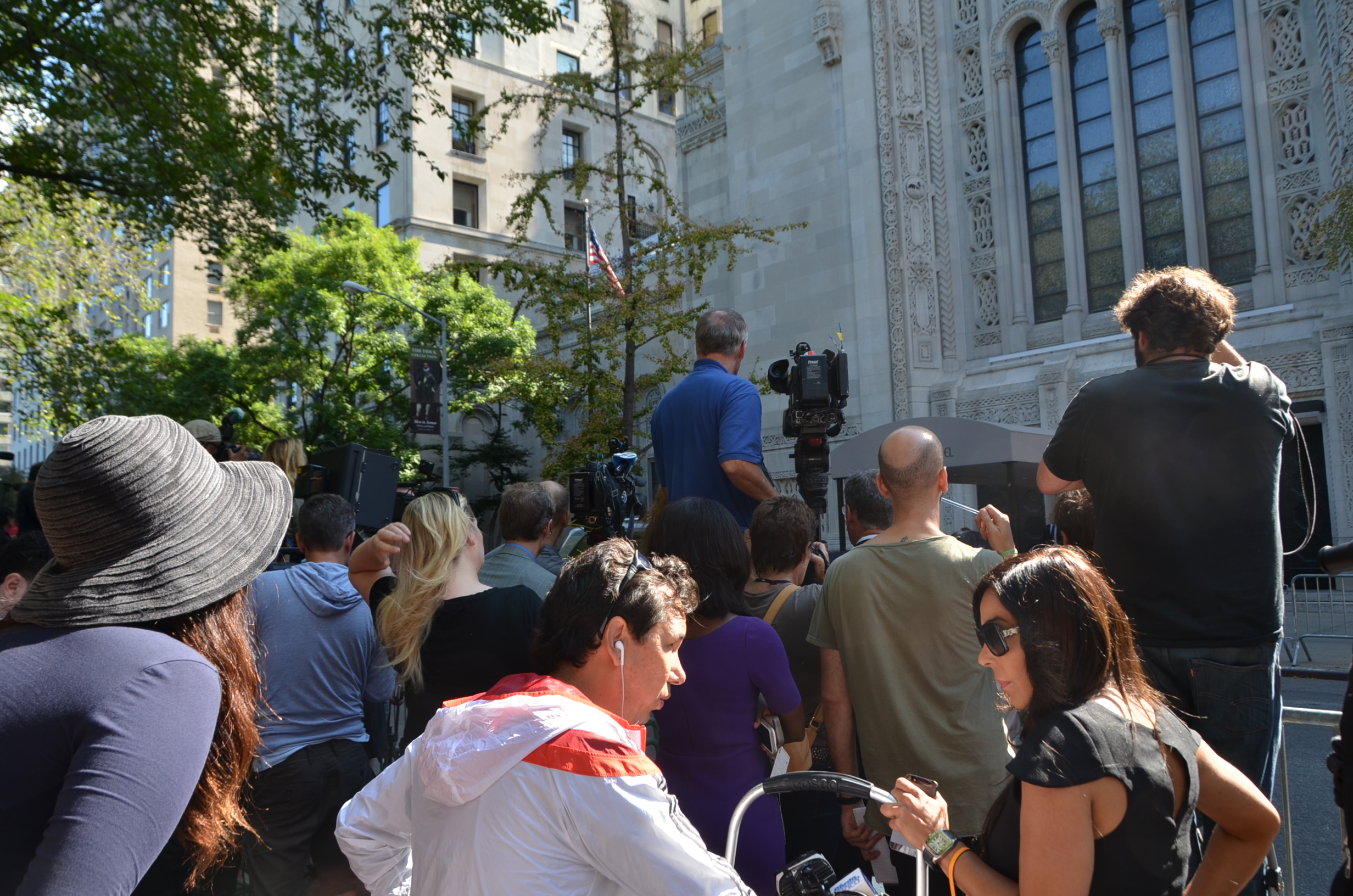 June 14th, at precisely 4:00pm, I rang the bell. I was greeted by her personal assistant who took me up the steep staircase to the main floor ballroom, I was in awe. There are the huge leaded glass windows Stanford White designed, the fireplace and all the moldings exactly intact to this day. The walls are filled with Hirschfeld art and . . . sitting in a chair by the sofa is Charlie Chaplin, the sculpture from the Bendel’s Christmas show. On the cocktail table was an assortment of teas and cookies awaiting me.